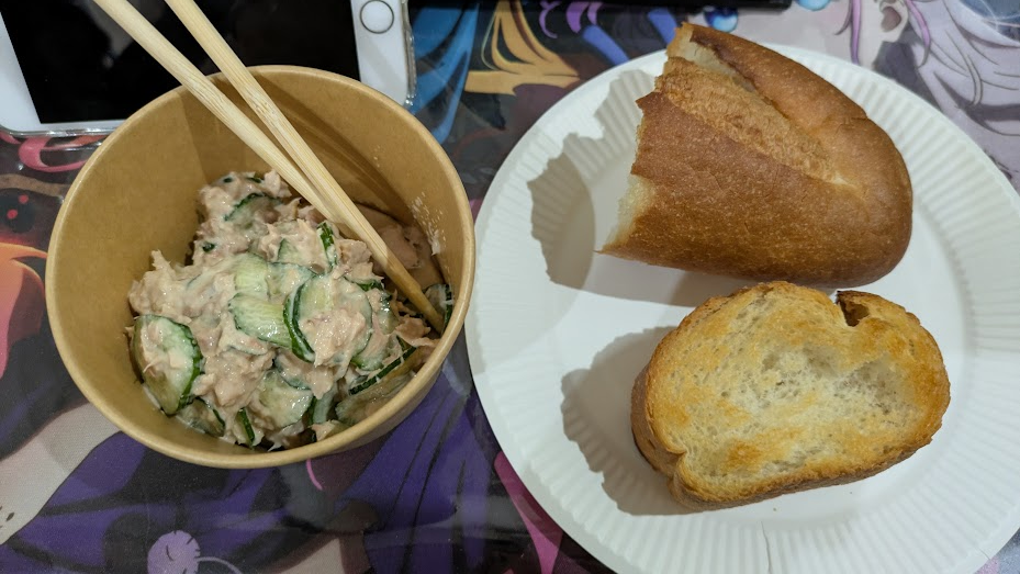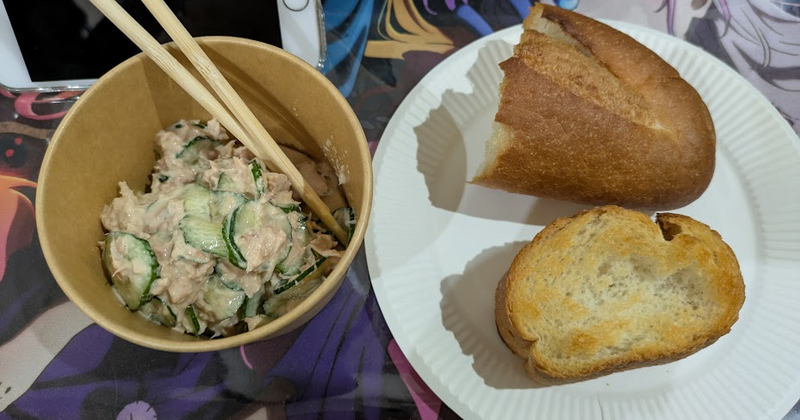 肉のハナマサのツナチャンクときゅうりのマヨネーズ和え 2026-04-16 00:00 gourmet バケットを100円で買ってきた。 これに合うおかずを作ろうと思い、肉のハナマサでツナチャンクを買ってきた。 きゅうりを輪切りにして、油を切ったツナチャンクとマヨネーズ、醤油、塩・コショウで和える。 実にシンプル。