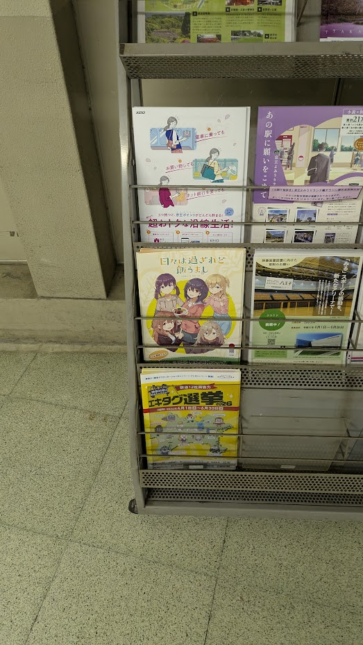 高尾駅で「桑都・八王子聖地巡礼マップ」を入手してきた。 表紙は「日々は過ぎれど飯うまし」になっていて、アニメに登場したスポットと日本遺産「桑都物語」に関連する場所をあわせて巡れる内容になっているらしい。 配布場所や設置期間を見つつ回るとちょうどよさそうだ。