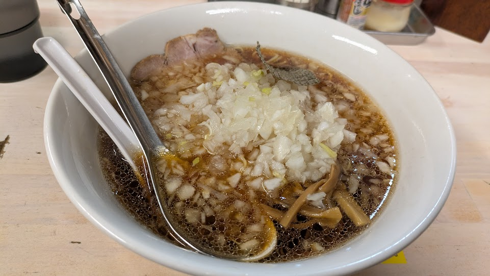 高尾駅近くの店に行って薬味(玉ねぎ)ラーメン 900円を食べた。 玉ねぎがたっぷり入っていて、面白いラーメンだった。 血液サラサラになりそうな感じがする(ならない)。